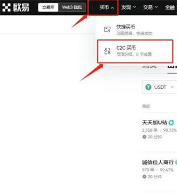 11、在【C2C交易】页面点击【出售】,币种选择【USDT】法币选择【CNY】,交易方式选择【银行卡】就是用银行卡进行交易,也可选择其它方式,选择合适的商家,点击【出售USDT】 即可