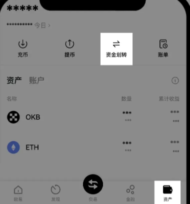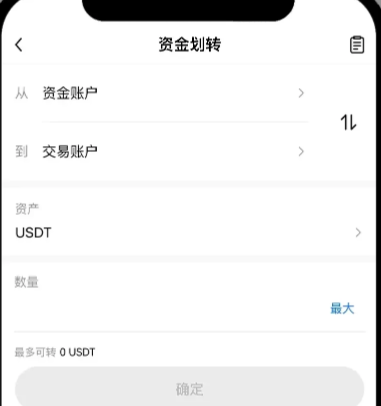 进入 App 首页点击底部【资产】-【资金划转】,选择想要划转的币种,填写数量-【确认】,将所需进行交易的数字资产从【资金账户】划转到【交易账户】,即可体验更多交易。