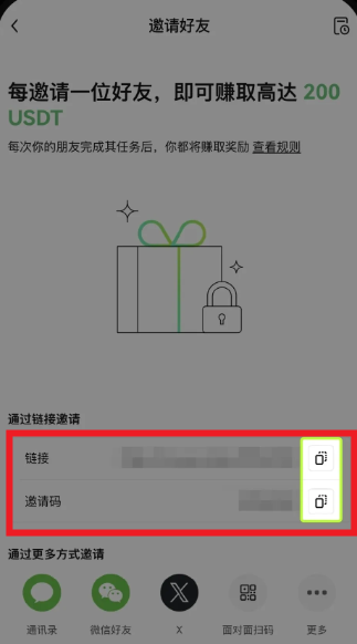 大家可以按照上面的方法找一下自己的注册邀请码,然后分享给自己的朋友,这样在注册的时候就可以填进去,双方都可以有一定的返现。