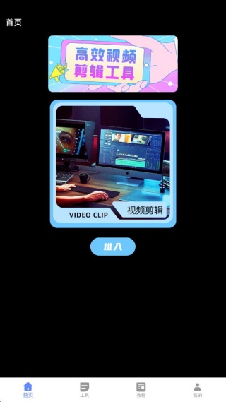 1、打开软件,进入首页,就能看到视频剪辑功能,点击进入即可开始创作。