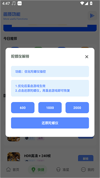 4、还可以优化游戏陀螺仪功能来获取更好的游戏操控体验,更多功能玩家用户可以自行探索