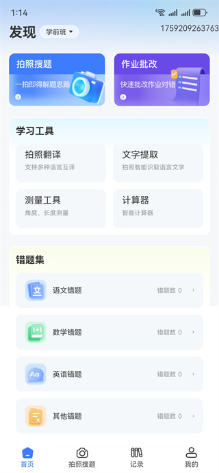 2、进入app可以使用拍照搜题、作业批改功能,还有很多学习工具;