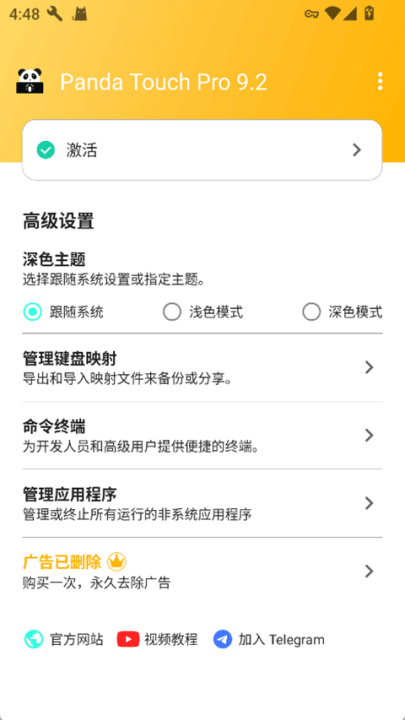2、非root权限的设备可以使用Shizuku进行无线激活使用,激活方式十分简单,手机先安装并运行Shizuku,然后就可以打开Panda Touch Pro点击【需要激活】文字