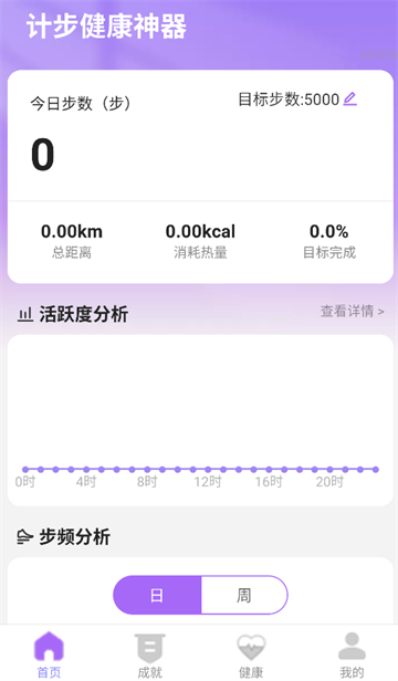 1、打开应用后,在首页点击"目标设置"可自定义每日步数(如8000步),系统会实时显示步频曲线和活动强度分析图表。