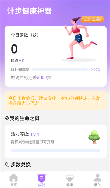 2、游戏化健康管理模式:通过养成生命之树的趣味方式激励运动,每完成目标可获得成长经验值奖励。