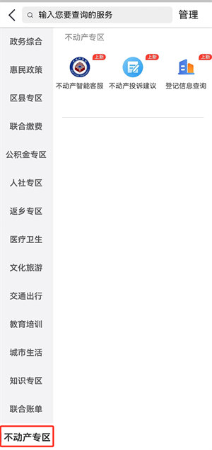 3 在左下方选择“不动产专区”