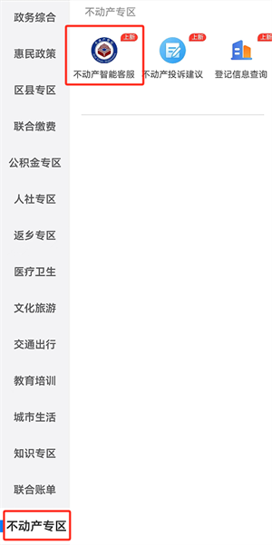 1在“不动产专区”中选择“不动产智能客服”