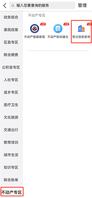 1在“不动产专区”中选择“登记信息 查询”
