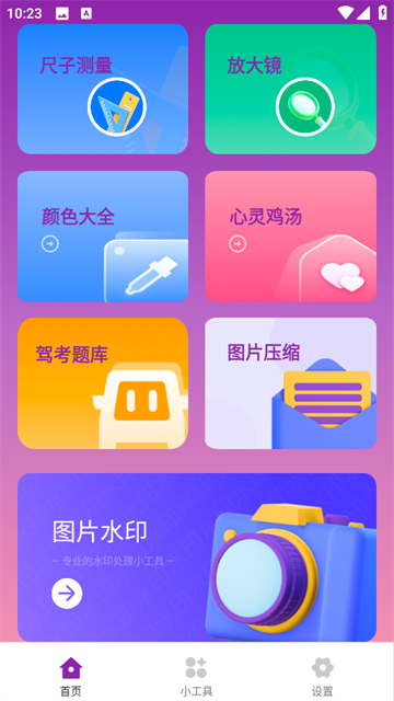 晴川工具箱是一款支持图片水印、尺子测量、放大镜、心灵鸡汤、图片压缩等一系列适用类型小工具。