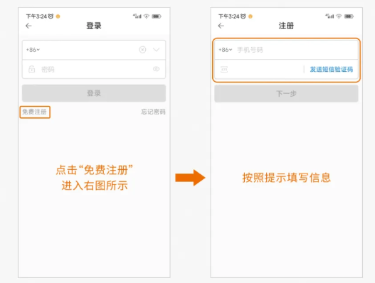 在登录页面点击“免费注册”,填写手机号及验证码,注册成功后即可登录账户。