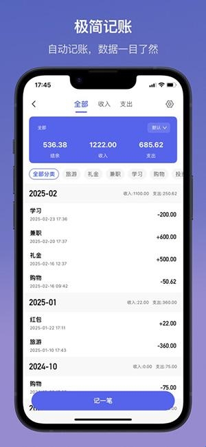 2、记账功能可以快速自动记账。