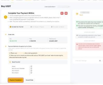 在首页/法币页面一键买币,支付完成后等待放币