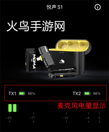 清晰展示两个麦克风的当前电量