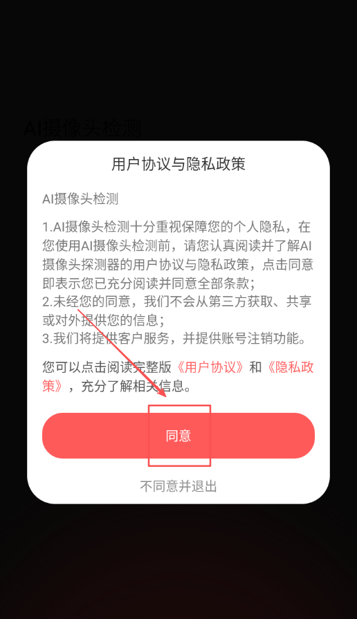 1、首次启动应用时会显示用户服务协议,需要点击同意按钮才能进入下一步操作。