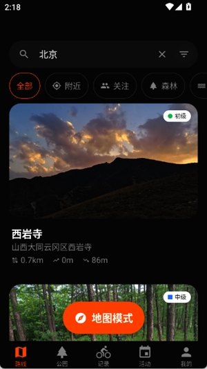 路线发现:探索全国各地的山地车路线,查看难度、里程、落差和骑友评价