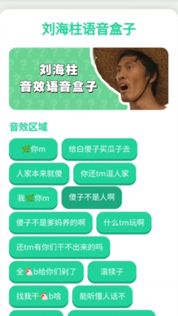 刘海柱语音盒下载是一款有用户自己制作的语言盒子手机软件,这款软件也是大家熟知的梗语音包,这款软件中的语音已经全部做好了,不管是打游戏的时候还是和朋友一起打电话的时候,都可以使用这款软件让你们之间的聊天更加有趣哦,快来下载试试吧。