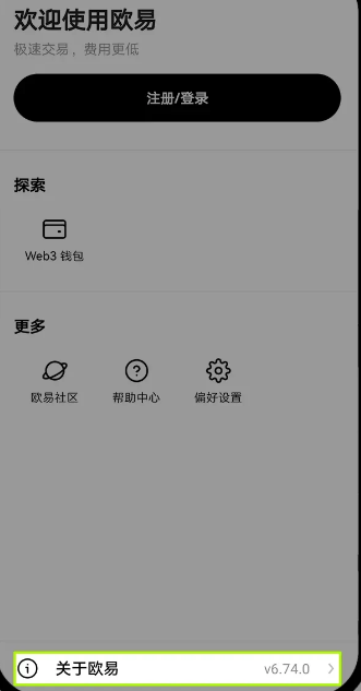 未登录状态下 App 的更新路径如下:点击首页左上角图标,进入个人中心,选择【关于欧易】,查看当前版本,点击【检查更新】,更新为当前最新版本的 App。