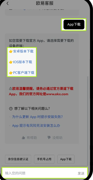 您也可以手动进入帮助中心的智能客服,输入【App 下载】,获得下载链接,下载最新版本的 App,操作路径如下: