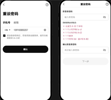 打开欧易 App首页,填写手机号,点击【下一步】,选择【忘记密码】重设密码。按照页面提示,输入新密码,并进行验证,完成后点击【确认】。