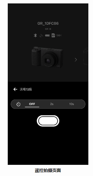 当通过蓝牙将相机连接到应用程序时,您可以通过应用程序释放相机快门,以及设置自拍定时器。