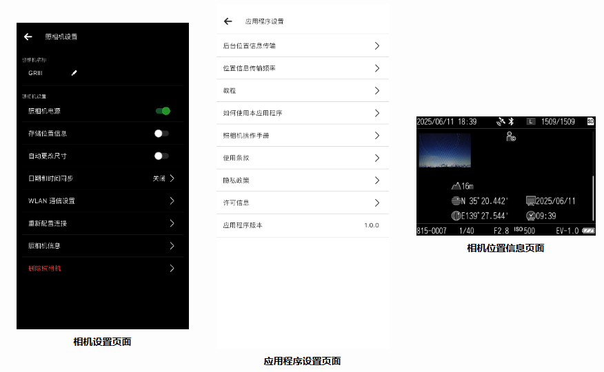 请注意,如果您在应用程序设置中启用“后台位置信息传输”,即使智能手机处于睡眠状态或正在使用其他应用程序,也会将位置信息传输到相机。
