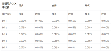 以下为平常常用的功能,包含现货买卖、合约以及期权的OKX 手续费整理。