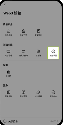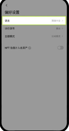 打开数字资产钱包,点击左上角全功能图标 > 偏好设置 > 语言