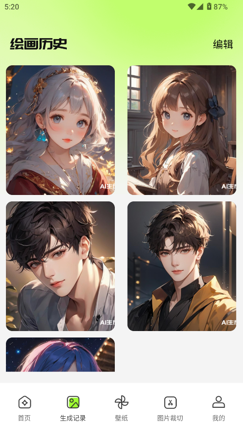 4、在生成记录页面,可以查看自己的绘画历史记录