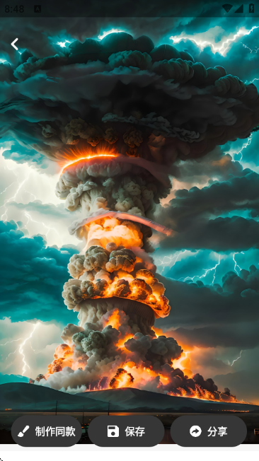 点击感兴趣的作品,可选择“制作同款”生成类似风格作品,也可“保存”或“分享”该作品。