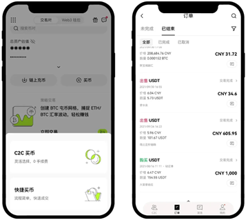 一、打开易欧web3钱包首页-点击C2C买币-快捷买币-点击购买-选择需要购买的数字资产