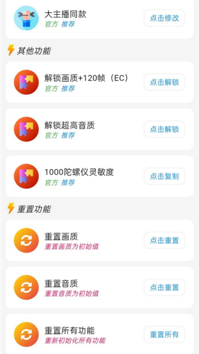 画质侠画质助手2025最新版是一款画质助手软件,内置修改和平精英流程画质、超高清画质、8p原生画质、主播同款画质、120帧画质、超高音质、1000陀螺仪灵敏度以及画质重置功能,使用它不管你的手机设备都能够解锁以上内容,并且画质侠app会根据玩家的手机系统进行自动推荐修改方案,用户可以你需要选择不同的修改方案,帮助你的手机设备充分的发挥,游戏体验更加好,修改画质之后如需要重置点击重置画质即可,非常方便。