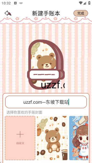 进入新建手账本界面,可输入手账本名称,选择喜欢的封面(如自定义或系统提供的可爱风格封面),点击“完成”创建手账本。