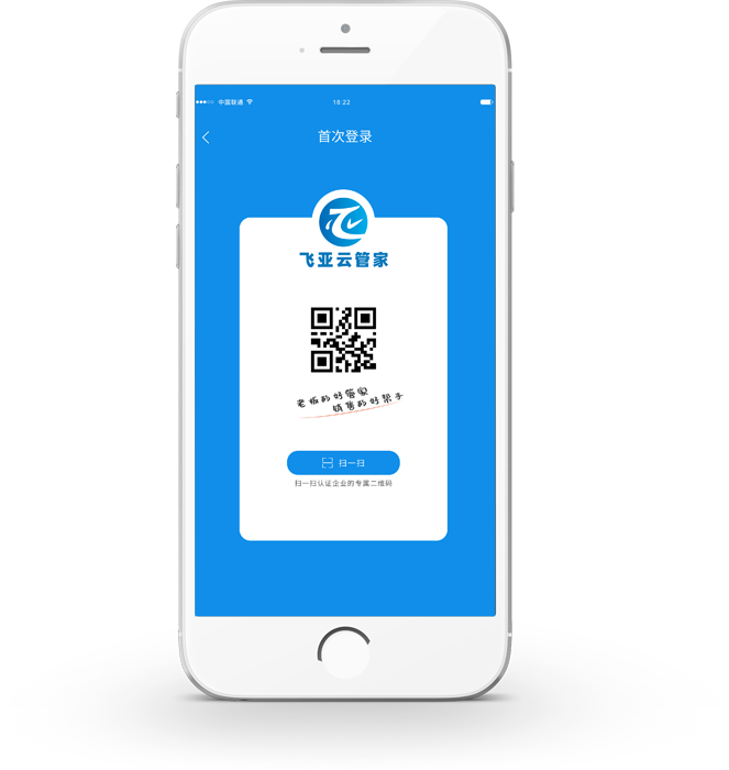 01首次登录飞亚云管家时请扫一扫企业的专属二维码