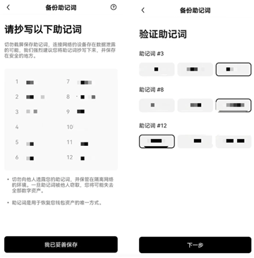 在钱包首页,备份钱包的助记词,并进行验证后,就可以使用了。