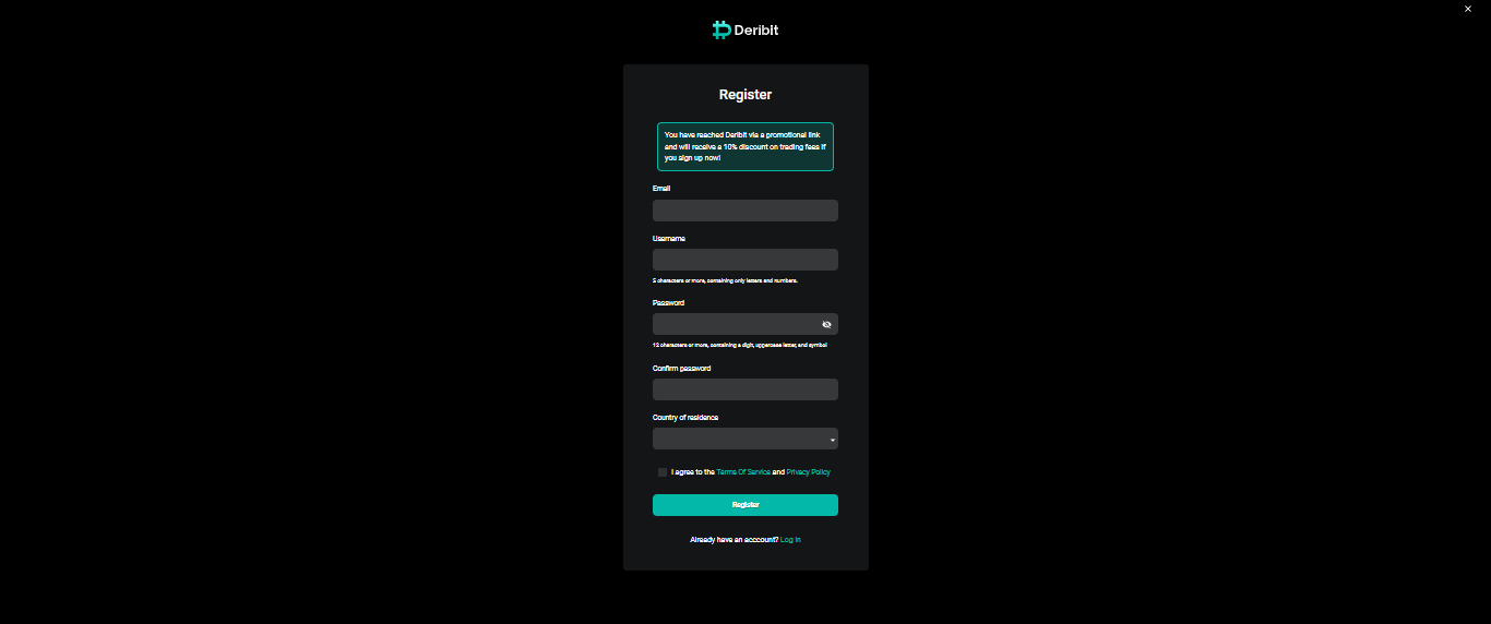 1、进入Deribit官网或下载APP,点击注册账号。
