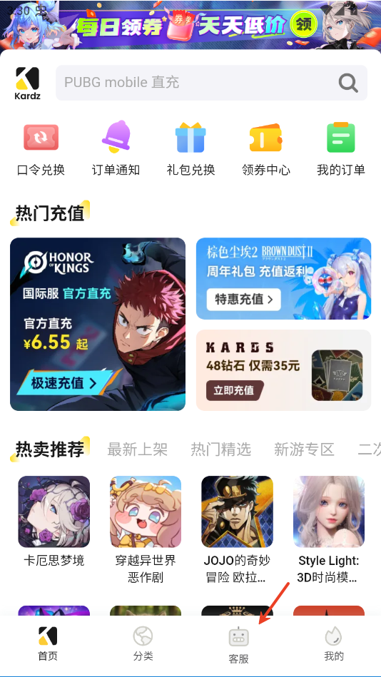 kardz官方下载最新是一款专注于海外游戏代充和账号交易平台,软件内拥有海量的游戏充值,基本涵盖了热门国际服手游,比如PUBG、暗区突围国际服、原神国际服等等,并且所有的充值都有折扣,充值价格普遍低于市场价,时不时还有满减券福利,同时支持多种支付渠道,方便国内用户操作。