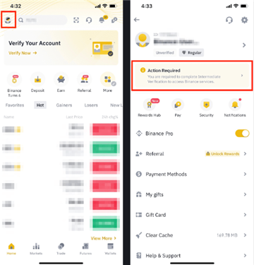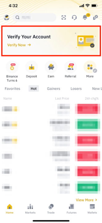 1,登录个人币安账户,然后点击 App 首页中的【立即认证】。