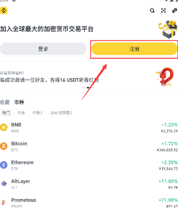 1.打开BinanceApp,点击【注册】。