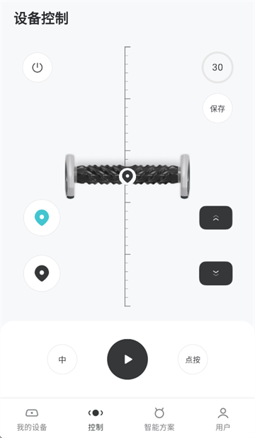 云望创新App通过蓝牙连接到我们全新的RheoFit A1自动滚按仪,通过App的控制界面,您可以精确的控制RheoFit A1的放松区间与速度,完全掌控您的放松体验。