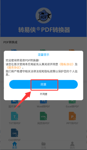 1、启动转易侠PDF转换器,确认隐私协议后进入。