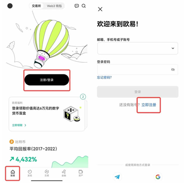 1、打开欧易APP,点击注册账号注册分为手机号注册和邮箱注册两种方式,您可以自由选择注册类型,然后按照要求填写完整相应信息即可完成注册。