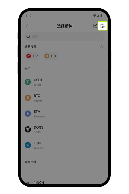 3、选择【资产】—【充币】—【充入数字货币】点击右上角充值记录的图标,即可查看相应的充值进度。