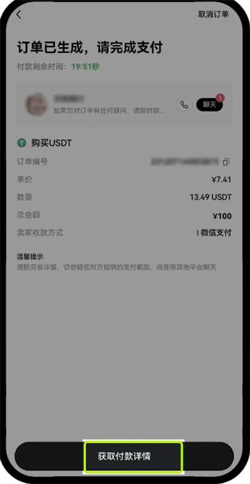 三、确定“购买详情预览”-点击“获取付款详情”-按照“商家要求的支付方式”进行转账-根据“页面展示的金额”进行付款-付款成功后点击“我已支付”-确认已转账-等待商家收到款放币即可