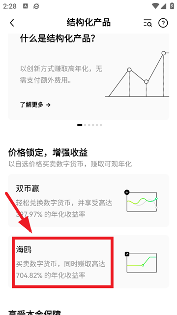 1、打开OKX App,底部导航选择【金融】进入金融页面,点击【结构化产品】后,选择【海鸥】