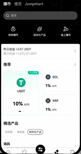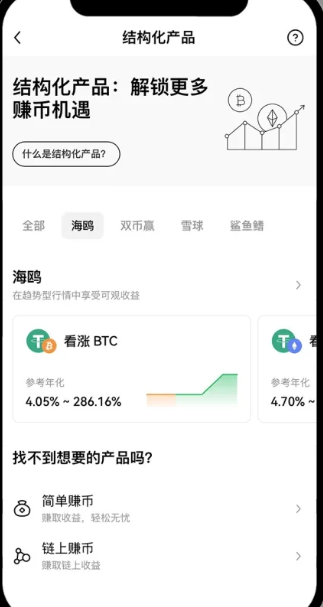 1. 打开 【欧易 App】,前往 【金融】,选择 【赚币】 > 【结构化产品】