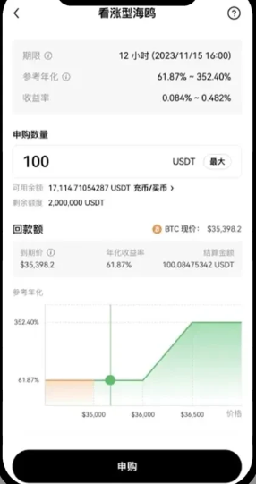 海鸥是一款由欧易打造的非保本趋势型投资产品。您可选择投入 BTC、ETH 或 USDT,助您在趋势型市场行情下赚取可观收益。若预估币价在预期的时间范围内会上涨,可选择看涨型海鸥,投入 USDT,赚取 USDT 收益。若预估币价在预期的时间范围内会下跌,可选择看跌型海鸥产品,投入 BTC 或ETH,赚取 BTC 或 ETH 币本位收益。