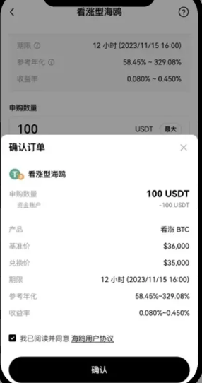 5. 查看订单详情并勾选 【海鸥用户协议】,点击 【确认】即可完成提交