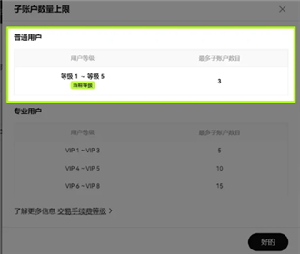 注:子账户创建完毕后,于当日24:00(HKT)后继承主账户费率等级。