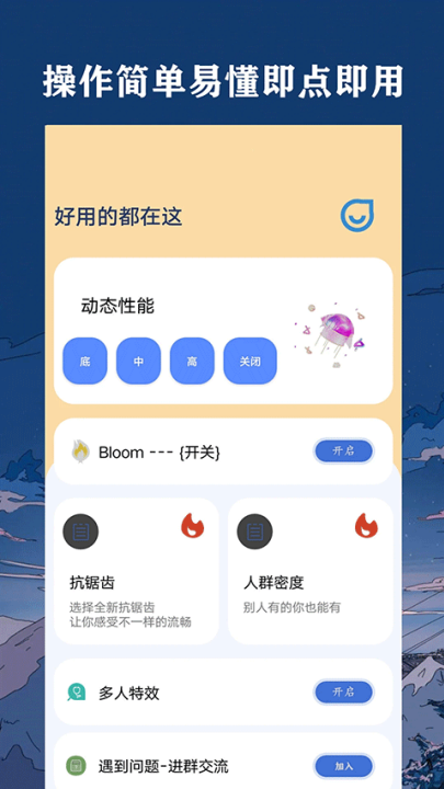 帧率猫画质助手(祯率猫)是专为手机打造的一款多功能帧率渲染工具,提供了从日常、图像质量与渲染视频帧率,阴影质量图片、后期效果等多方面的功能,操作简单,即点即用,避免您下载超多应用的难题,且应用体积轻巧,界面简洁。功能基本都是一键使用,让你轻松提高帧数。还可以显示手机的实时帧数,让你可以了解手机的性能。