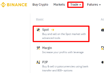 1,登录币安账户,前往【交易】部分并选择【现货交易】。